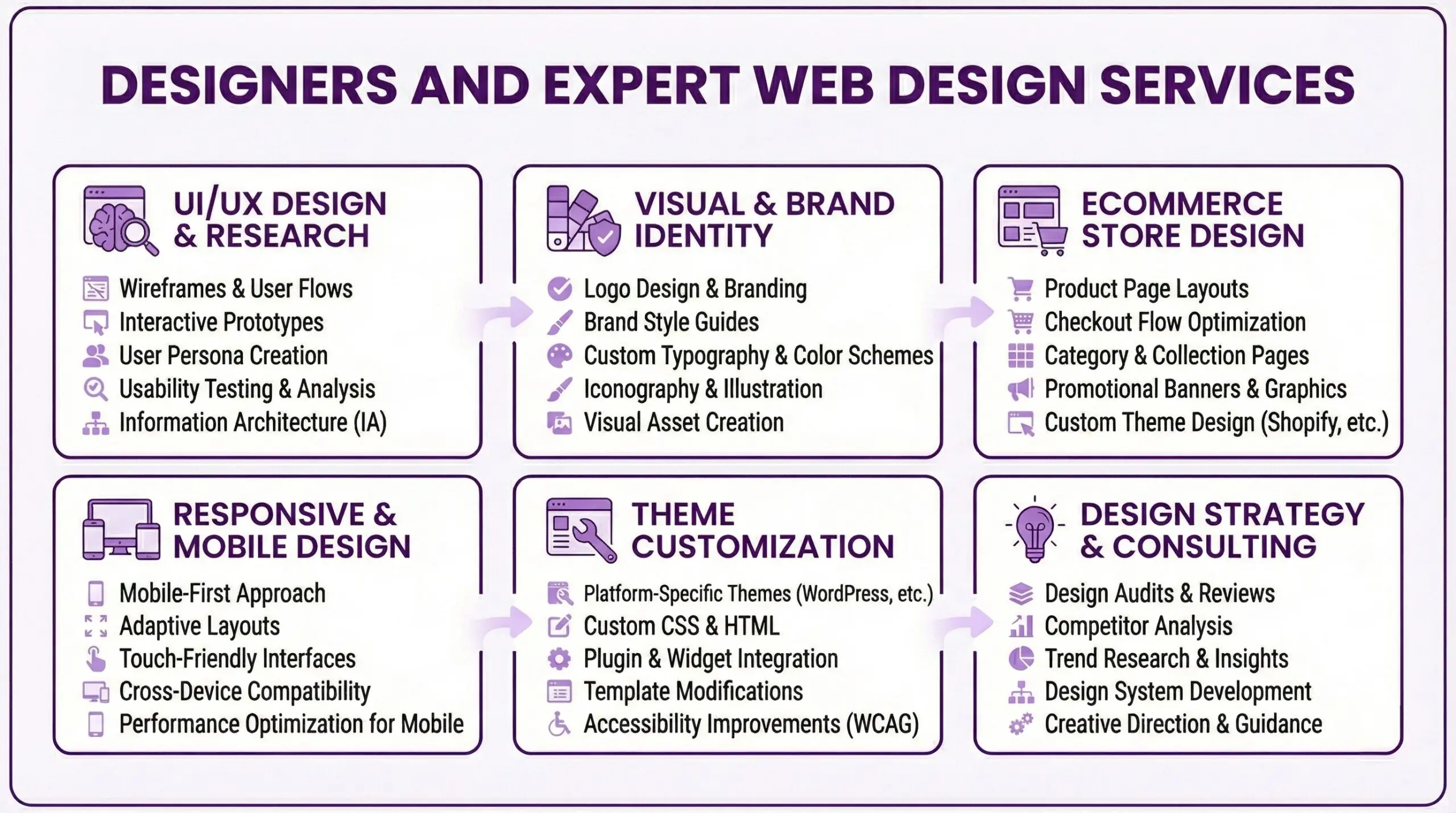 User interface design, user experience research, wireframing, prototyping, and conversion optimization |